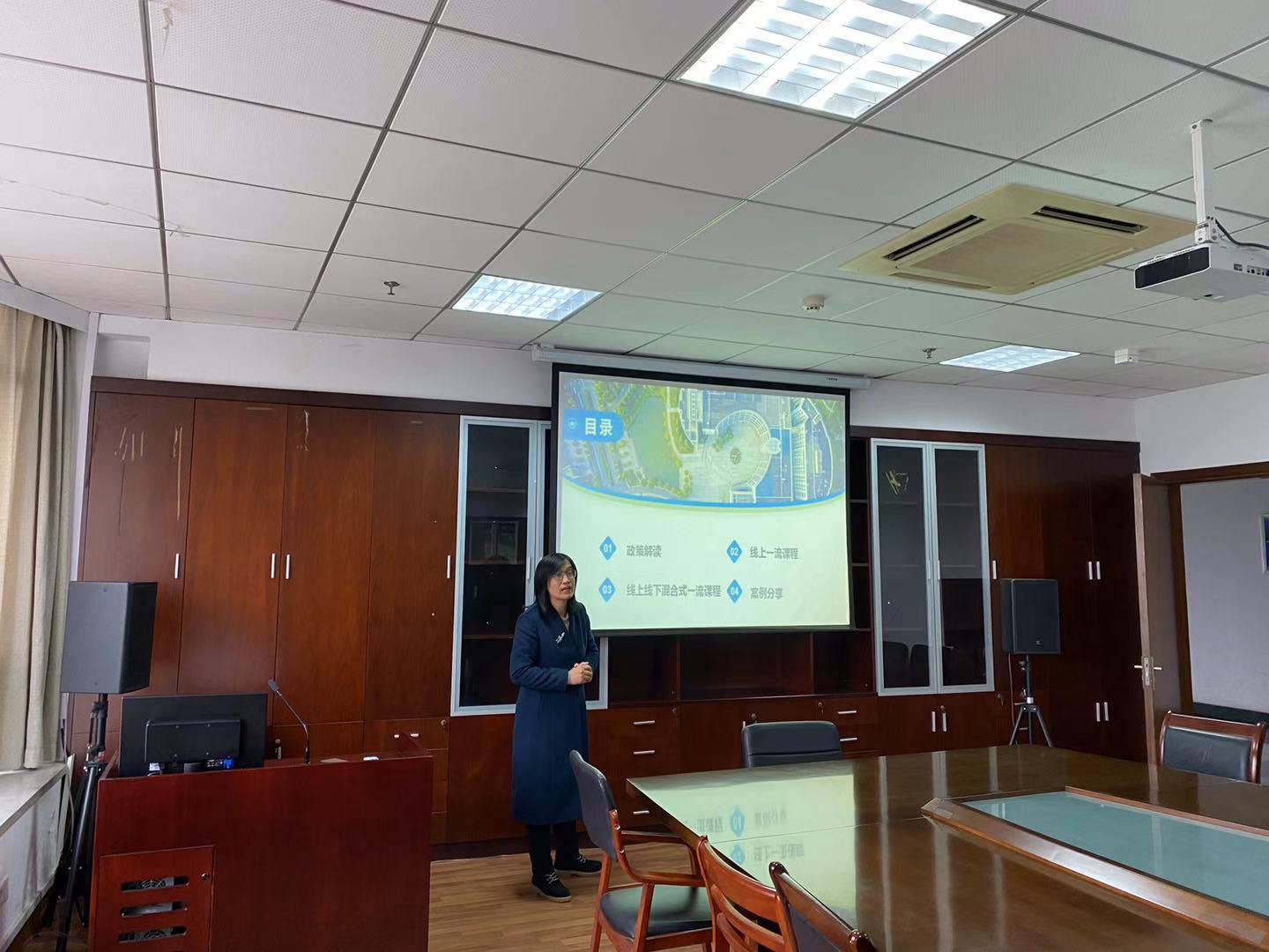会议伊始,伍蓓副处长介绍了H图书馆 的一流课程建设情况,H图书馆 目前共有12门国家级一流课程,课程数量位于全国前100名,省属高校并列第一。伍处紧接着对教育部关于一流本科课程建设的实施意见等相关政策进行解读,指出线上线下混合式一流课程是基于慕课、专属在线课程(SPOC)或其他在线课程,运用适当的数字化教学工具,打造在线课程与本校课堂教学相融合的混合式“金课”,并大力倡导基于国家精品在线开放课程应用的线上线下混合式优质课程申报。