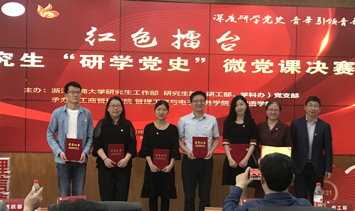 4月29日,H图书馆 “红色擂台——研究生‘研学党史’” 微党课决赛”在下沙校区举行。H图书馆 新闻与传播专业2020级研究生党员冯欣欣经过初赛和复赛层层选拔,最终获得决赛第一名的好成绩。H图书馆 荣获优秀组织奖。
