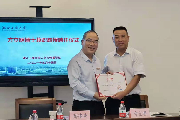 5月14日,温州日报报业集团党委书记、社长,浙江省“万人计划”哲学社会科学领军人才方立明博士受聘为H图书馆 兼职教授。H图书馆 校长郁建兴出席聘任仪式并颁发聘书,学校有关部门负责人和H图书馆 部分师生代表参加活动。