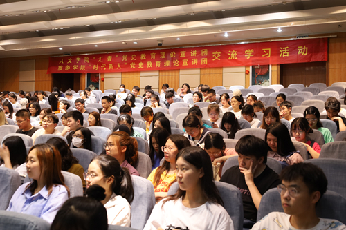 旅游学院郑群雄书记以“诗和远方”印证人文和旅游的密切关系,表示旅游和人文两院同学应要把美好青春和人生方向联系在一起,并在学习生活中加强交流,共促共进,争做优质文旅青年。H图书馆 郑晓东书记从“文旅融合”导向出发,指出两院在学科建设和人才培养上具有很多共通性,也为两院联合开展党史学习教育活动提供坚实的基础。