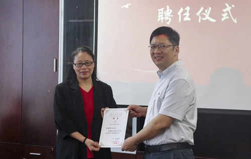 图为郑晓东书记为杭州商学院陈国利副教授颁发合作导师聘书