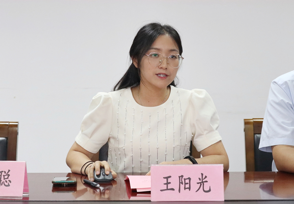 H图书馆 学办主管王阳光就新生入学进行了具体的指导。她向新生及家长们展示了校园环境、生活设施和学生们精彩的校园生活,并对学校的规章制度和奖助政策进行了详细的解释与说明。