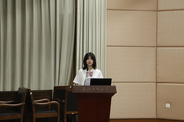 来自汉语1901的陈佳超同学作为学生代表上台发言。她认为大学是“憧憬与迷茫并存”的,希望新生们能够把商大作为舞台,在商大尽情展现自己的才华;同学们应该在踏踏实实学习的前提下勇敢地挑战自己,多参加学科竞赛、志愿服务、社会实践等活动。“最后的价值是取决于你们自己。”