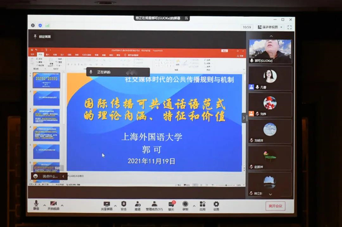 上海外国语大学郭可教授从国际国内的舆论环境出发,剖析了建构可共通话语范式的原因,提出了三点可共通话语范式的理论内涵,并总结了可共通话语范式的特征与价值。