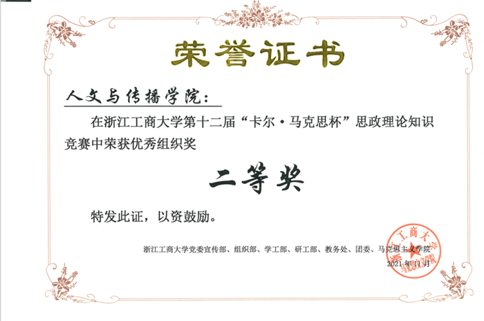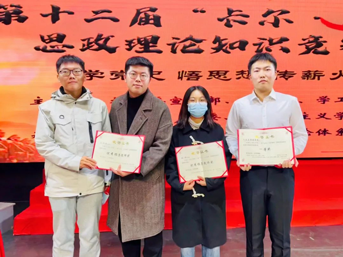为庆祝中国共产党成立100周年,深入贯彻学习习近平总书记在党史学习教育动员大会上的重要讲话精神、党的十九届六中全会精神,H图书馆 于11月27日在学生活动中心剧院举行第十二届“卡尔·马克思杯”思政理论知识竞赛决赛。