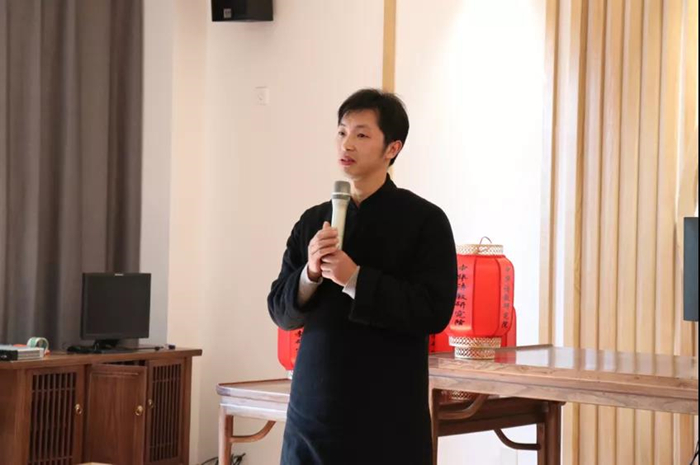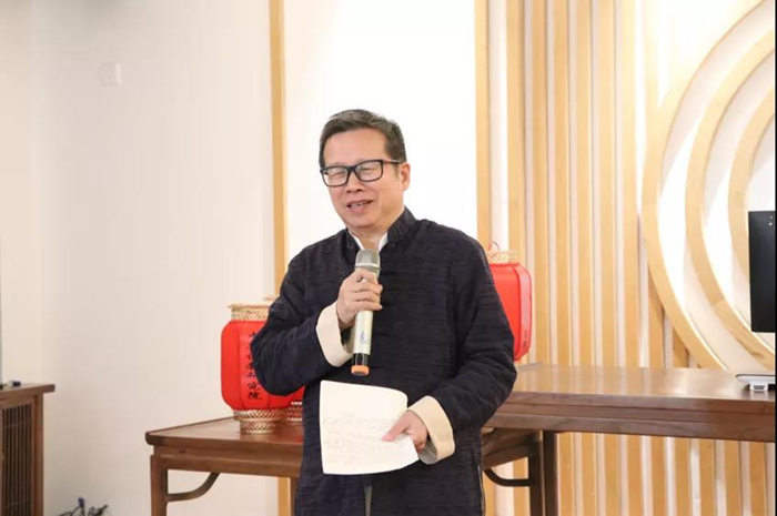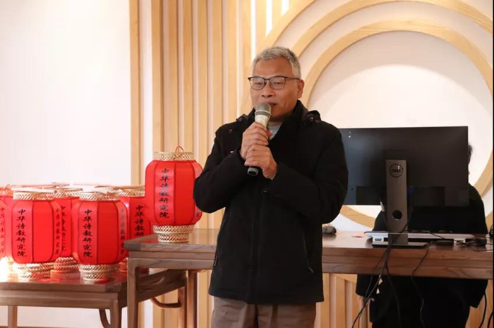 图为浙江省诗词与楹联学会常务理事朱迁进致辞