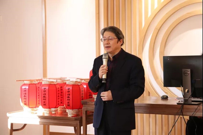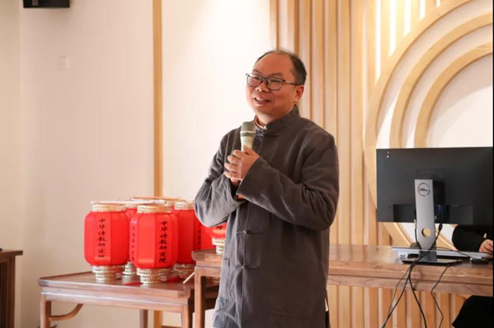 图为唱道文化教育集团董事长、中华诗教研究院院长胡维瑾发言