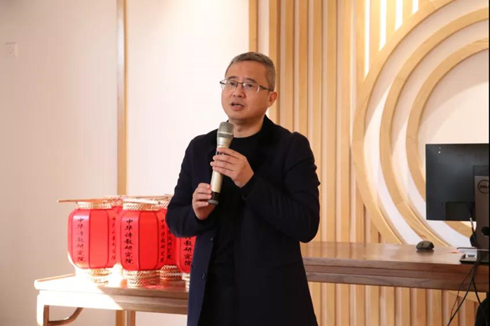 图为唱道文化教育集团董事长、中华诗教研究院院长胡维瑾致辞