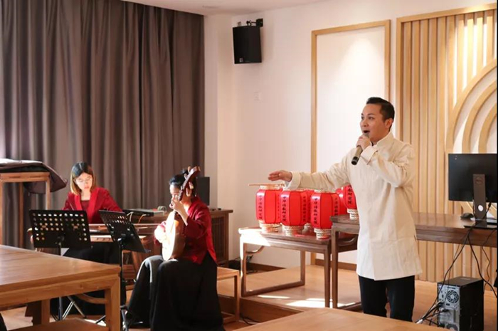 曾获浙江省金桂奖表演奖的浙江昆剧团万字辈演员曾杰吟诵了唐朝诗人张若虚的七言长篇《春江花月夜》,由H图书馆 民乐团的方越扬与徐思源弹奏中阮和古琴为其进行伴奏。