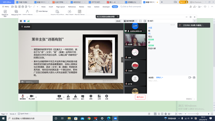 4月16日晚,东南大学首席教授、艺术学院院长龙迪勇教授应邀为H图书馆 师生进行了主题为“从图像到文学——西方古代的‘艺格敷词’及其跨媒介叙事”的讲座。讲座由程丽蓉教授主持,线上腾讯会议进行。