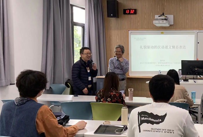 4月20日下午,浙江大学博导彭利贞教授受邀来H图书馆 做讲座,题目为《礼貌驱动的汉语道义情态表达》。讲座由H图书馆 戴黎刚教授主持。