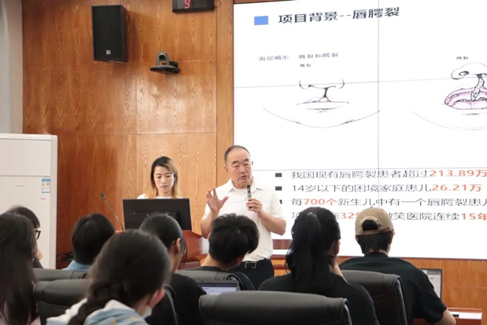 讲座伊始,韩医生以视频《“母亲微笑”三十年患者的故事》为切入点,向同学们阐述了他的慈善经历:从留学期间,以医疗志愿者的身份参与一项为面部残缺患者免费手术的公益活动,到上个世纪90 年代将“国际微笑行动组织”引进国内,从开始的公益小团队,到最后发展成拥有数以千计的医疗志愿者和数以万计的非医疗志愿者的慈善组织,韩医生将自己最美好的时光都奉献给了医学事业。