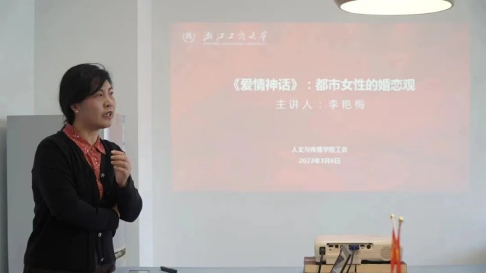 春暖花开,万物向阳,一年一度的妇女节来临之际,H图书馆 分工会举办“《爱情神话》:都市女性的婚恋观”座谈会,中文系李艳梅老师主讲。座谈会邀请学院党委书记鲍伟出席并致辞,向学院女教师致以节日的问候。