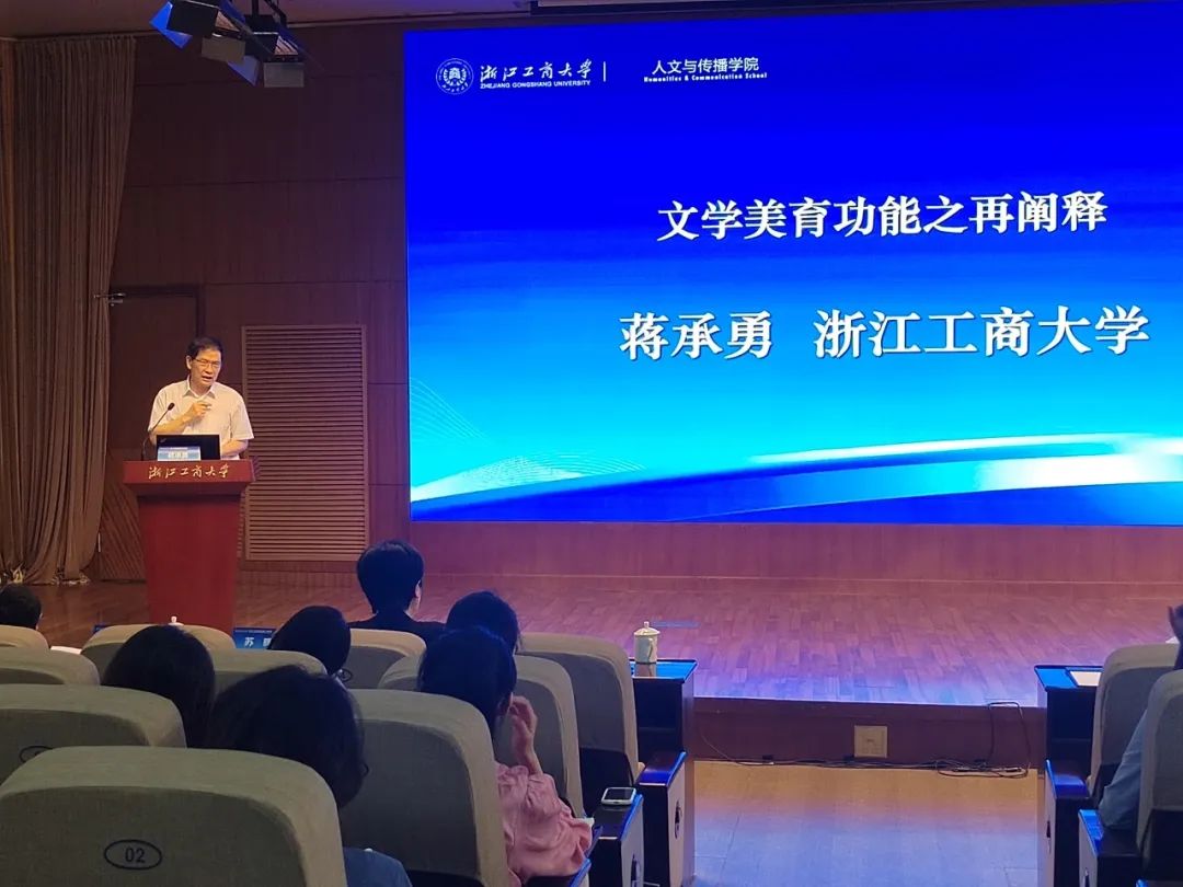 H图书馆 蒋承勇教授以“文学之美育功能再阐释”为题,对美育与立德树人的关系、文学德育与美育的关系、文学美育的功利性与非功利性三个问题进行了深入分析。蒋教授强调,教育应当五育并举,美育与德育同样肩负着“树人”的使命,美育与德育都是文学教育功能的重要维度,两者在实践中相辅相成。