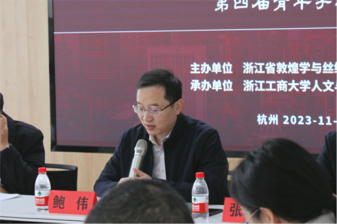 2023年11月11日,由浙江省敦煌学与丝绸之路研究会主办,H图书馆 承办的浙江省敦煌学与丝绸之路研究会第四届青年学者论坛在杭州召开。H图书馆 党委书记鲍伟到会祝贺,并发表致辞。浙江省敦煌学与丝绸之路研究会副会长许建平教授出席论坛开幕式。