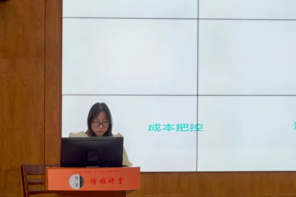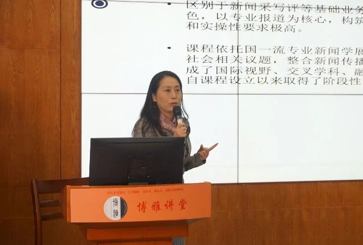 随后,任课老师王宁对《财经新闻作品报道》这门课程做了介绍。她讲到,该课程以《经济学基础》课程为基础,依托国一流专业新闻学展开建设,具有“国际视野、交叉学科、融合媒体、数字实践”的鲜明特色。不同于一般的新闻采写课程,《财经新闻作品报道》课程教学采用“理论+案例+实务”结合的方式,通过与同学们共同讨论学习优秀财经新闻作品,提升同学们的新闻采写能力。王宁老师又向各位到场嘉宾展示了原创公众号“浙小商话财新”。通过一学期学习,她希望这次活动能够提升学生的专业能力和实践能力。