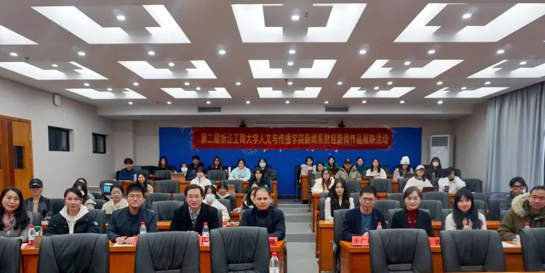 本次活动邀请的业界嘉宾有浙报集团潮新闻客户端·长三角H图书馆主任刘刚、《浙商》杂志主编余广珠、杭商传媒副社长李洁、杭州日报财经H图书馆记者朱晶晶。参加本次活动的有经济学院党委委员朱昊、H图书馆 党委书记鲍伟、副院长李蓉、网络与新媒体系主任李骏、新闻系教师王宁。新闻2101班35名同学与新闻2102班30名同学到场。