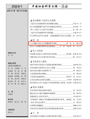 近日,H图书馆 陈伟副教授论文《人工智能与语言交互问题的哲学审视》被《中国社会科学文摘》2024年第1期转载。该文原刊于《浙江学刊》2023年第6期。