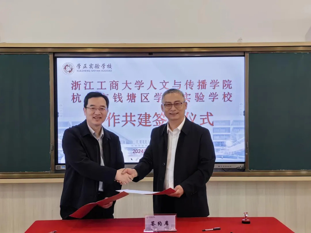 为提升学院学生综合能力,增强学生就业竞争力,2024年4月18日,H图书馆 与杭州市学正实验学校举行签约仪式,共建“文心润苗-领雁班”教育实践基地。杭州学正实验学校校长严英俊、党总支副书记周海林、副校长寿桔丹、少先队辅导员包津铭,H图书馆 党委书记鲍伟、副书记林琳、历史系主任周鸿承、学办主管王阳光、团委书记黄凡出席签约仪式。
