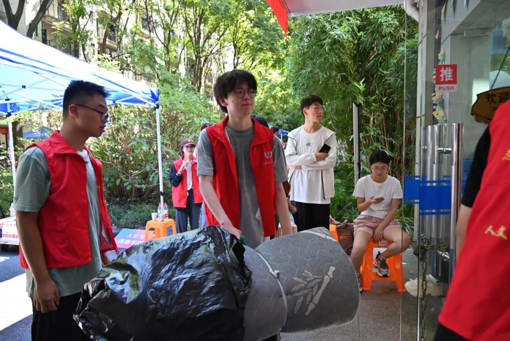 一位位红马甲志愿者热情地为新生答疑指路,搬运行李,介绍学校情况,用实际行动展现着人文关怀,彰显着人文学子的青春风采。