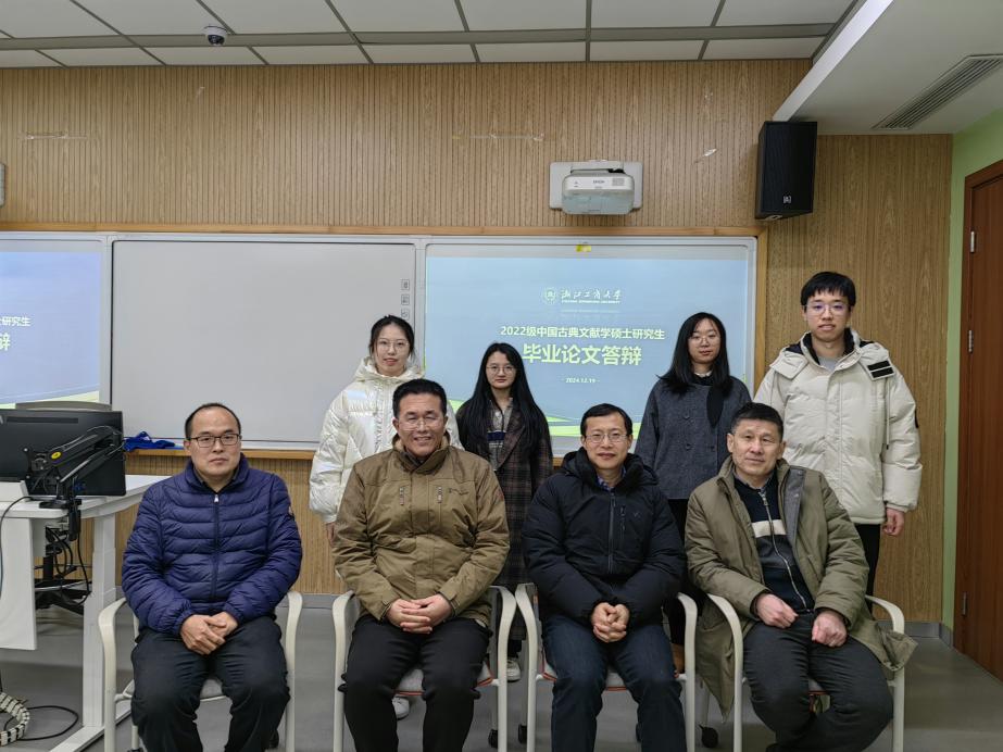 中国古典文献学专业的毕业答辩在12月19日举行。4位同学从论文的研究背景、目的、方法、内容等方面进行了陈述;由浙江省社科院历史研究所所长徐立望教授和宫云维、杨齐福、张新朋等老师组成的答辩委员会就论文的谋篇布局、考证思路等方面进行了评议和提问,并提出了进一步修改的意见和建议;学生们对委员会的评议和提问进行了回应。经答辩委员会认真评议和无记名投票表决,一致认为4位同学的论文均具有较高的学术水平,同意他们通过学位论文答辩。