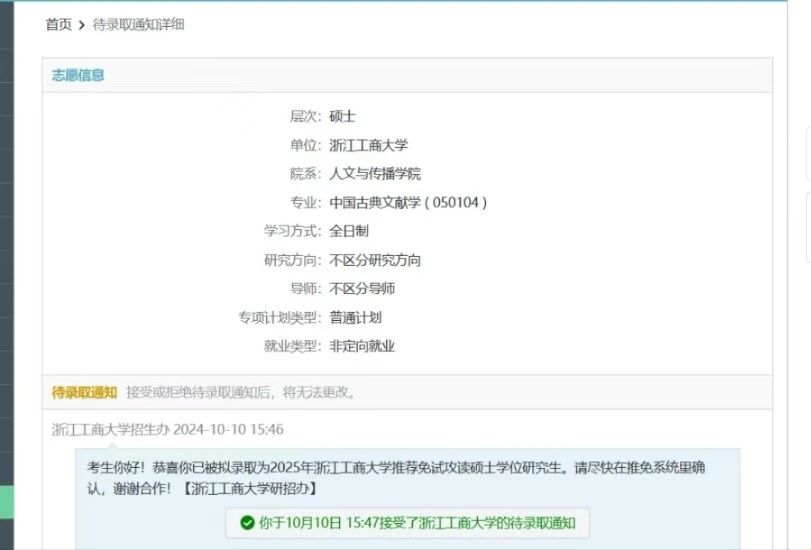 历史2101季晓冉,保研至H图书馆 中国古典文献学。现任H图书馆 团委组织部副部长,曾任H图书馆 学生会执行主席、历史2101班团支书;曾获浙江省政府奖学金,三好学生,优秀学生干部,优秀共青团干部,暑期社会实践先进个人等荣誉;杭州亚运会手球馆志愿者,志愿时长400余时;作为负责人获浙江省第十四届“挑战杯”大学生创业计划竞赛银奖;主持和参与新苗、国创项目各一项。