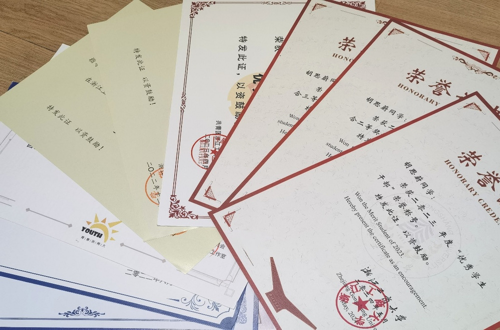 本科在校期间,担任校团委青春浙商大干部;荣获校级二等奖学金、校级三等奖学金、校优秀共青团员、校优秀学生干部等荣誉称号;拥有包括挑战杯、互联网+、大广赛在内的多项学科竞赛经历,获浙江省第十八届“挑战杯”工商银行大学生课外学术科技作品竞赛金奖,H图书馆 2022年大学生广告艺术设计竞赛二等奖等奖项,校级大学生创新创业项目结题。