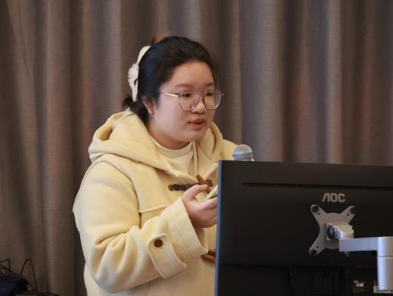活动伊始,李蓉老师对《纪录片专题研究》课程的教学改革情况进行汇报。她以“四力融通,五环联动”为教改思路,在课内积极采用多种方式激发同学思考,课外组织纪录片观影、拍摄等活动引导学生走向实践,通过加强课堂内外联动培养全媒体人才高阶能力。在此基础上,李老师进行智慧课程的探索,设置了AI助教,扩宽了同学们的知识。