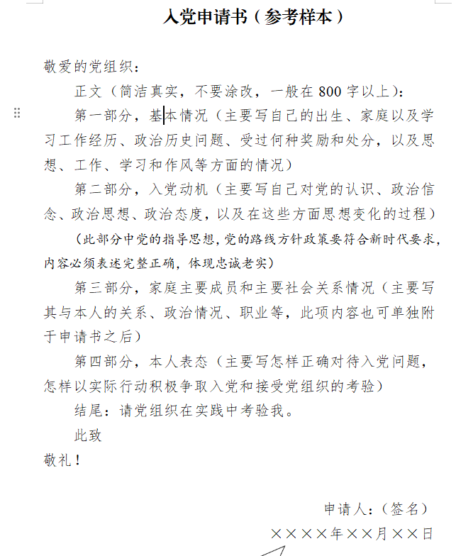 注:根据党章和《中国共产党发展党员工作细则》等规定,入党申请人应当年满十八岁,落款必须本人签名。