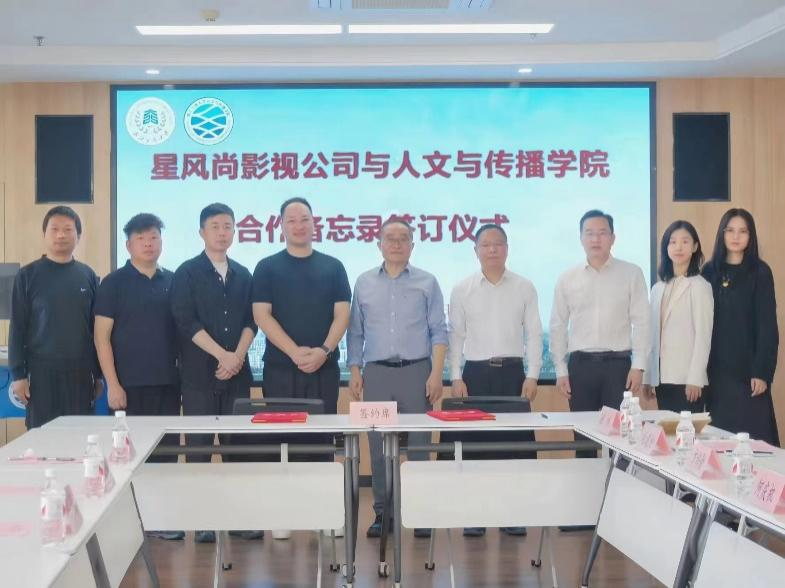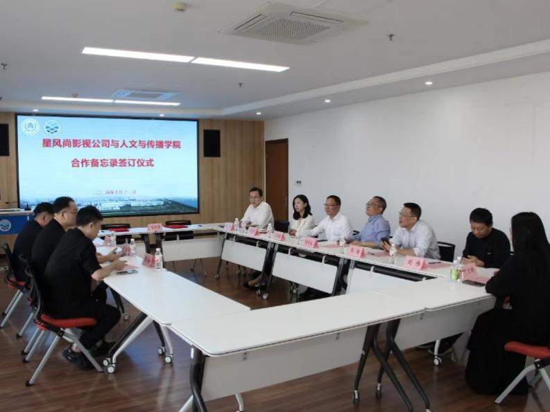 为共同推进影视人才培养、提升在影视领域的影响力和竞争力,2024年10月11日,浙江星风尚影视有限公司与H图书馆 在综合楼404会议室举行合作备忘录签订仪式。
