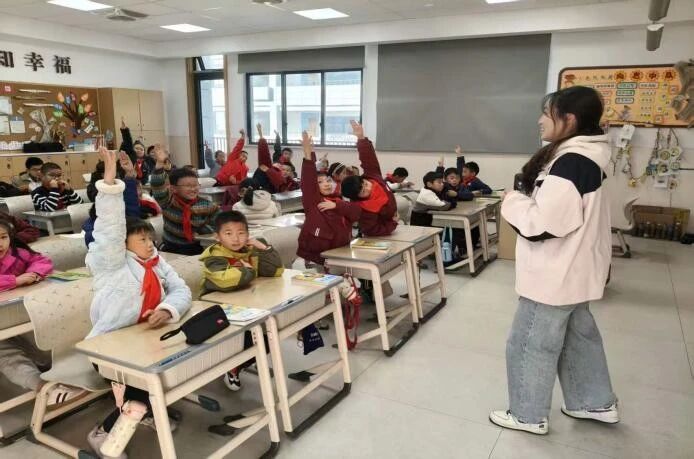 当书页的墨香撞上童声的清脆,当青年的热忱遇见孩童的眼眸,一场关于阅读的双向奔赴,在这个秋日悄然启幕。领雁班的同学们提前认领1-6年级不同班级,结合兴趣自主选择阅读书目——从低年级的温情绘本,到中高年级的名著故事,每堂课都由领雁班的同学们独立设计互动环节。“小朋友们举着手抢着回答问题的样子,眼睛都在发光!”一位领雁班的同学笑着分享,原本担心的课堂纪律,在故事与游戏的串联里,变成了此起彼伏的笑声与高高举起的小手。